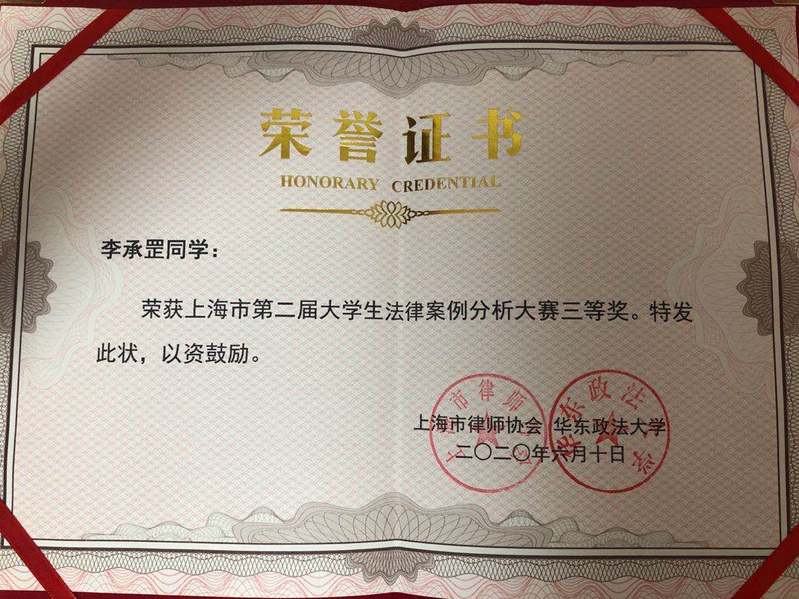 近日,上海市第二届法律案例分析大赛获奖名单出炉,首次参赛的上海师范大学法律系学子收获佳绩,斩获二等奖、三等奖各一项。其中,2017级魏健宇同学荣获二等奖;2018级李承罡同学荣获三等奖。