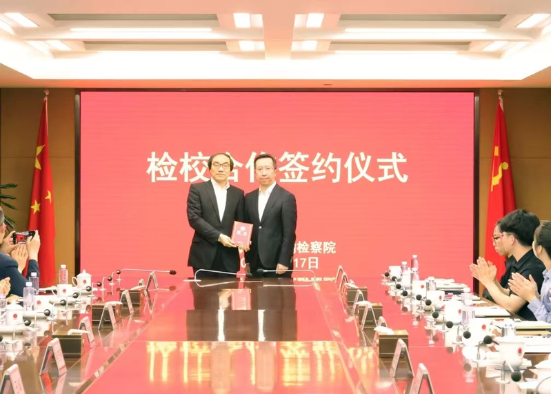 高亭代表现金网 ,与上海铁路运输检察院党组书记、检察长张炜,签署“检校合作”协议。