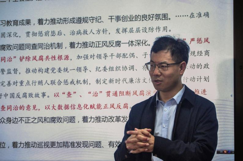 首先,准确把握当前党风廉政建设的总体形势。在今年中央纪委第四次全会中,习近平总书记强调要正确认识反腐败斗争,党中央对当前反腐败斗争形势的总体判断是:反腐败斗争取得新成效,但形势仍然严峻,同时要坚定打赢反腐败这场持久战的坚强决心。周教授系统梳理了中央关于反腐败斗争形势概括的演进历程,并结合2018年以来领导干部廉政档案数据以及中国的清廉指数走势进行实证分析。针对当前反腐败斗争新态势,周教授着重强调:其一,不良作风隐形变异,“四风”问题反弹压力持续存在;其二,我们需要破除反腐败的认知误区,例如避免“速胜论”“无望论”“有害论”。