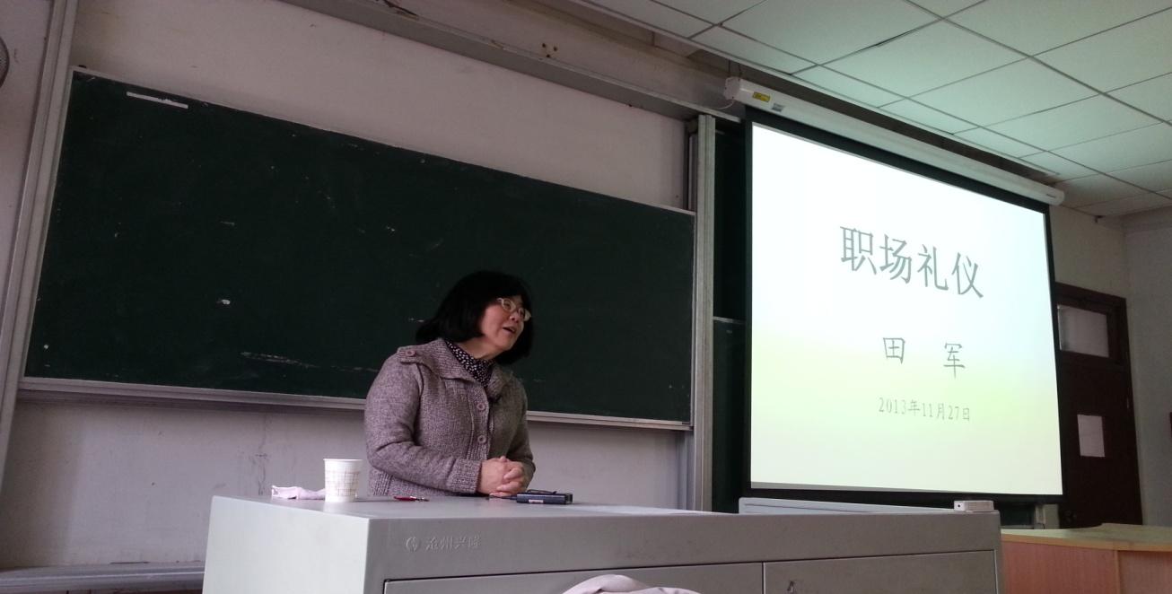 2013年11月27日下午两点,第三教学楼101室,上海市著名的礼仪专家、上海师范大学法政现金网
