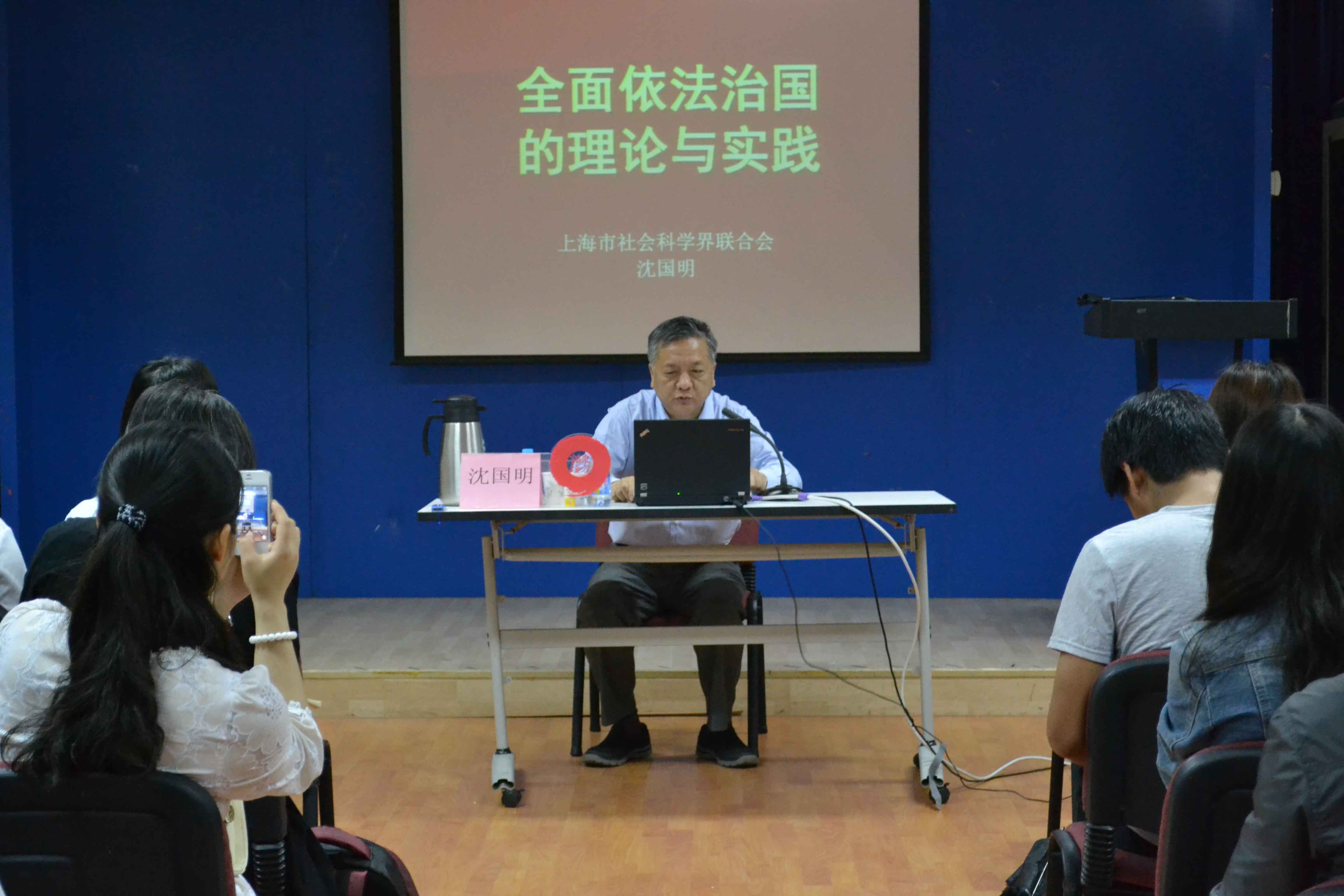 2015年5月22日,上海社科联党组书记、专职副主席沈国明教授应邀到现金网 做题为“全面推进依法治国的理论和实践问题”的讲座。沈国明教授对全面推进依法治国的相关内容进行了有针对性的解读和分析。内容包括:十八届四中全会通过的《中共中央关于全面推进依法治国若干重大问题的决定》,对我国全面推进依法治国,建设社会主义法治国家进行了全面部署,提出了一系列新的举措,对推动我国法治国家建设具有重大的理论与实践意义,全面推进依法治国需要解决许多理论和实践问题等。