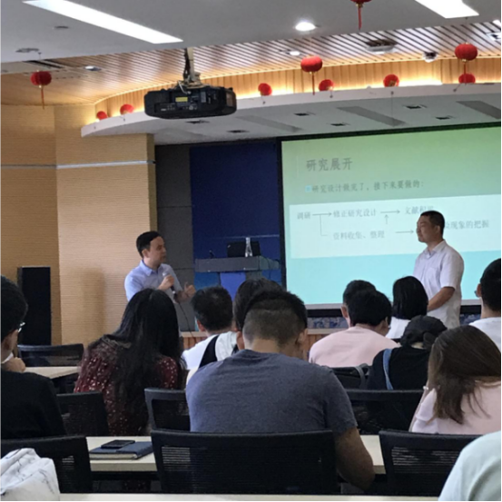 冯老师以自身研究经验开场,借助他本人所做的土地测量信息生产的实证研究,指出信息收集在多方主体的作用下,发生了不同程度的信息“失真”,由此提出“本应遵循科学标准与规范的基层活动,却镶嵌在社会关系之中,造成了信息生产过程中出现信息失真、保真等不同倾向”这一问题,由此展开对社会科学中实证研究的思考:一项社会学实证研究该如何展开(即问题提出)?一篇社会学实证研究的论文如何着手?论文构思(如开题报告)应包含哪些内容?而后,冯老师结合自身实证研究经验,以及多年指导研究生的教学体会,主要从社会学实证研究的问题提出、文献综述与研究设计三方面开展讲座。