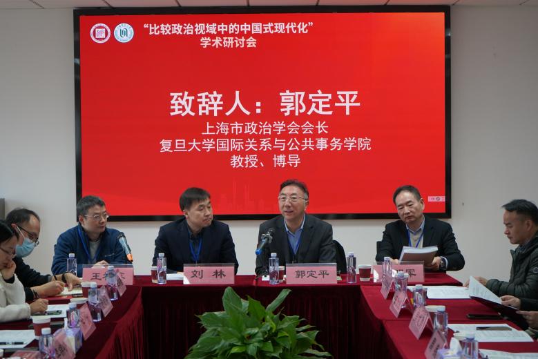 郭定平会长在致辞中指出本次研讨会兼具参与覆盖面广、老中青学者梯队完备等鲜明特色。他强调,本次研讨会主题紧扣党的二十届四中全会精神,总书记关于中国式现代化兼具世界共同特征与中国特色的重要论述为学界提出了重大研究课题,期待各位专家学者的成果分享助力相关研究拓展。郭定平会长特别介绍,上海市政治学会已正式成立青年委员会,未来将通过专业化运作对接上海市社会科学联合会青年论坛,进一步凝聚青年学术力量,助力青年学者成长成才。