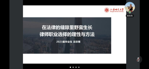 2025年3月21日晚,现金网-皇冠现金网 以线上形式举办“朋辈领航,职引未来”优秀校友就业指导讲座。活动由2023级辅导员樊青青主持,现金网 2023届法律(非法学)专业校友、上海市锦天城律师事务所商事诉讼与仲裁律师吴欣雨,2024届社会保障专业校友、国家税务总局昆山市税务局公务员郑明俊应邀作专题分享,两百余名学生在线参加。