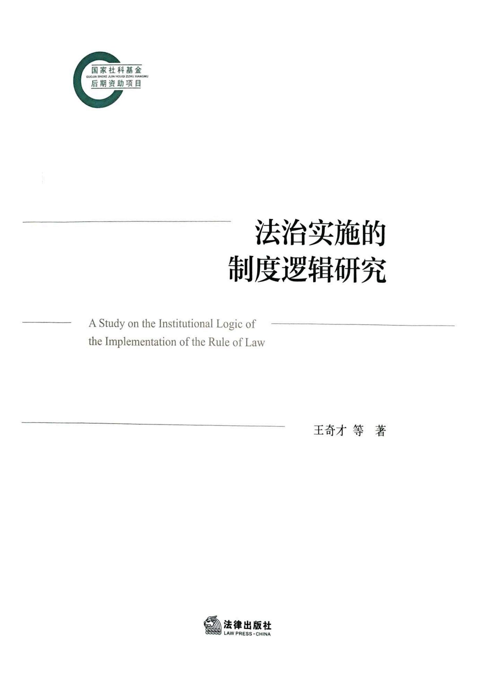 现金网 王奇才副教授学术专著《法治实施的制度逻辑研究》由法律出版社出版。