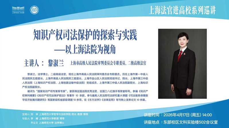 上海法官进高校系列巡讲:知识产权司法保护的探索与实践-以上海法院为视角