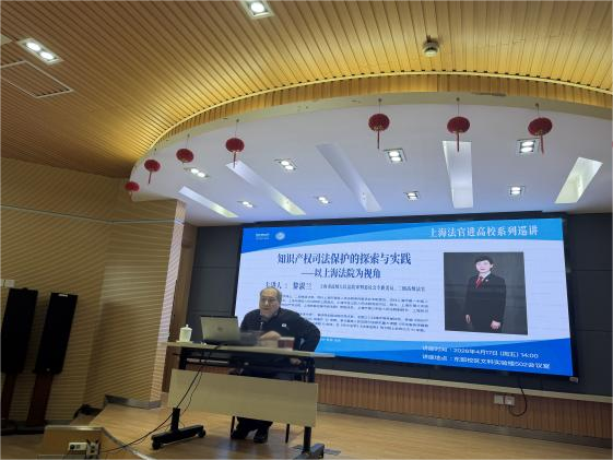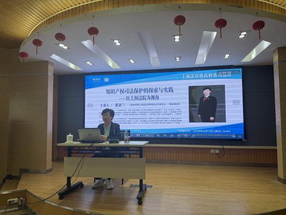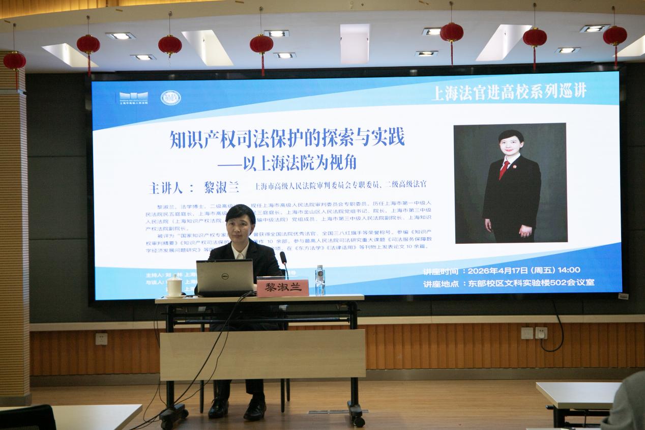 2026年4月17日,“上海法官进高校系列巡讲”第一讲“知识产权司法保护的探索与实践——以上海法院为视角”主题讲座在上海师范大学成功举办。讲座开始之前,上海师范大学党委副书记、副校长赵扬,现金网 院长刘林,法律系主任李峰,与上海市高级人民法院审判委员会专职委员黎淑兰一行就双方开展院校合作进行交流。